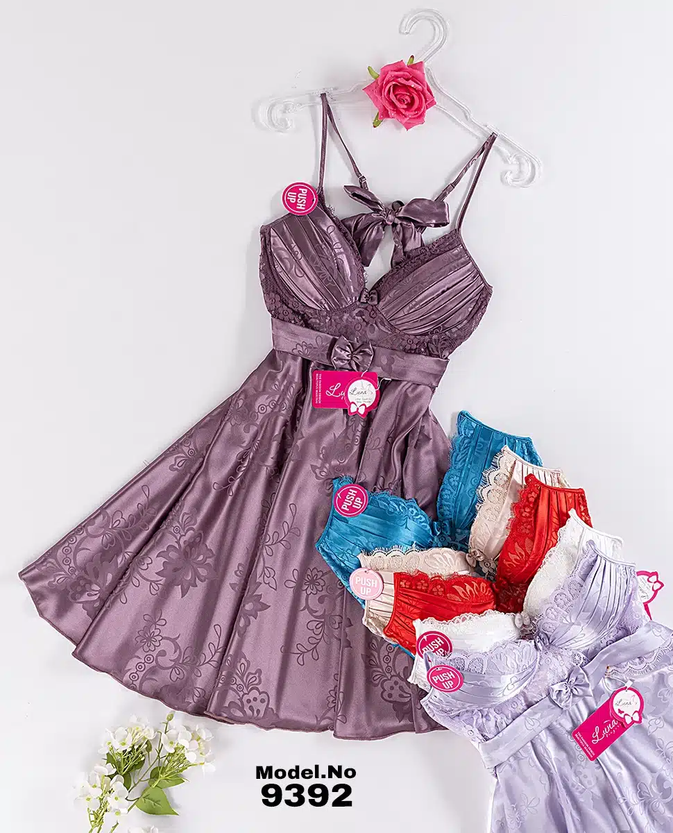 موديل بيجامة ستان منقطة قطعتين كود 6029