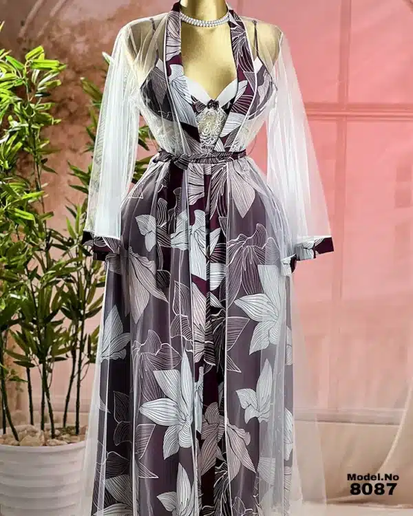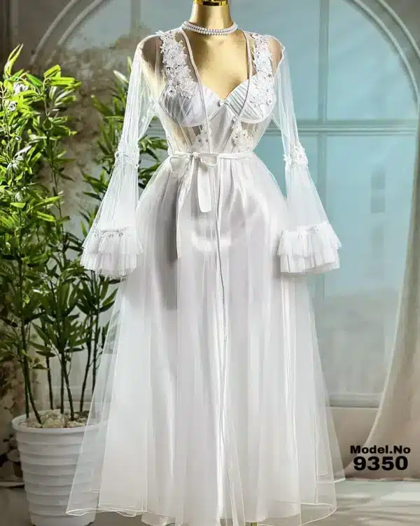 موديل صباحيه طويل أبيض كود 9350