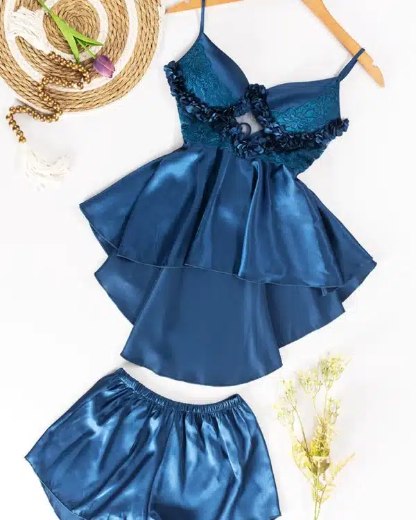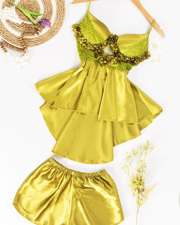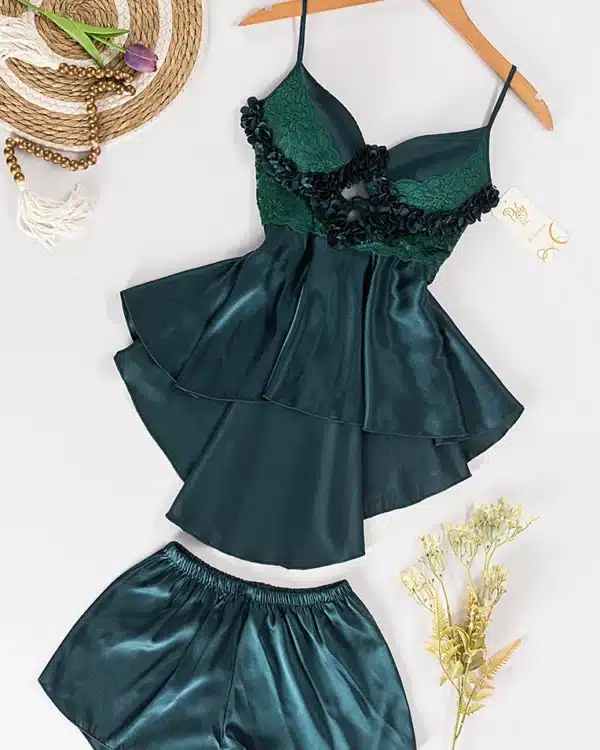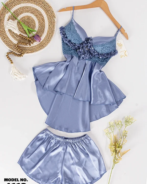 موديل بيجامة 4 قطع ستان مشجر كود 1402