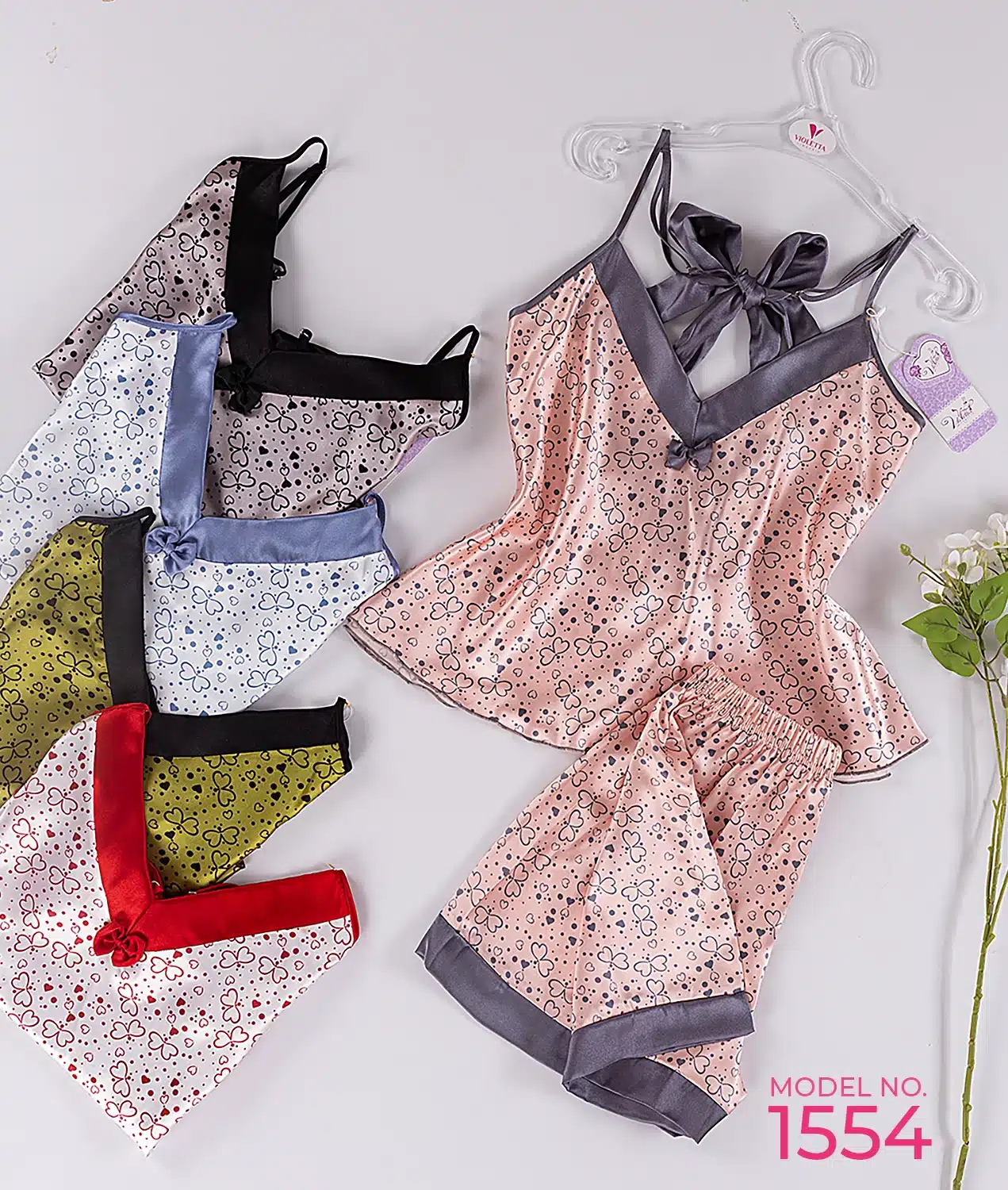 موديل بيجامه قطعتين شورت ستان كود 7004