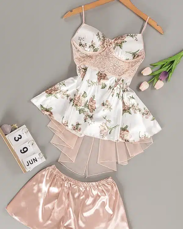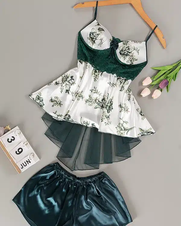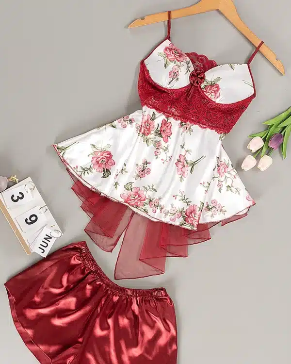 موديل بيجامه قطعتين شورت ستان كود 7004