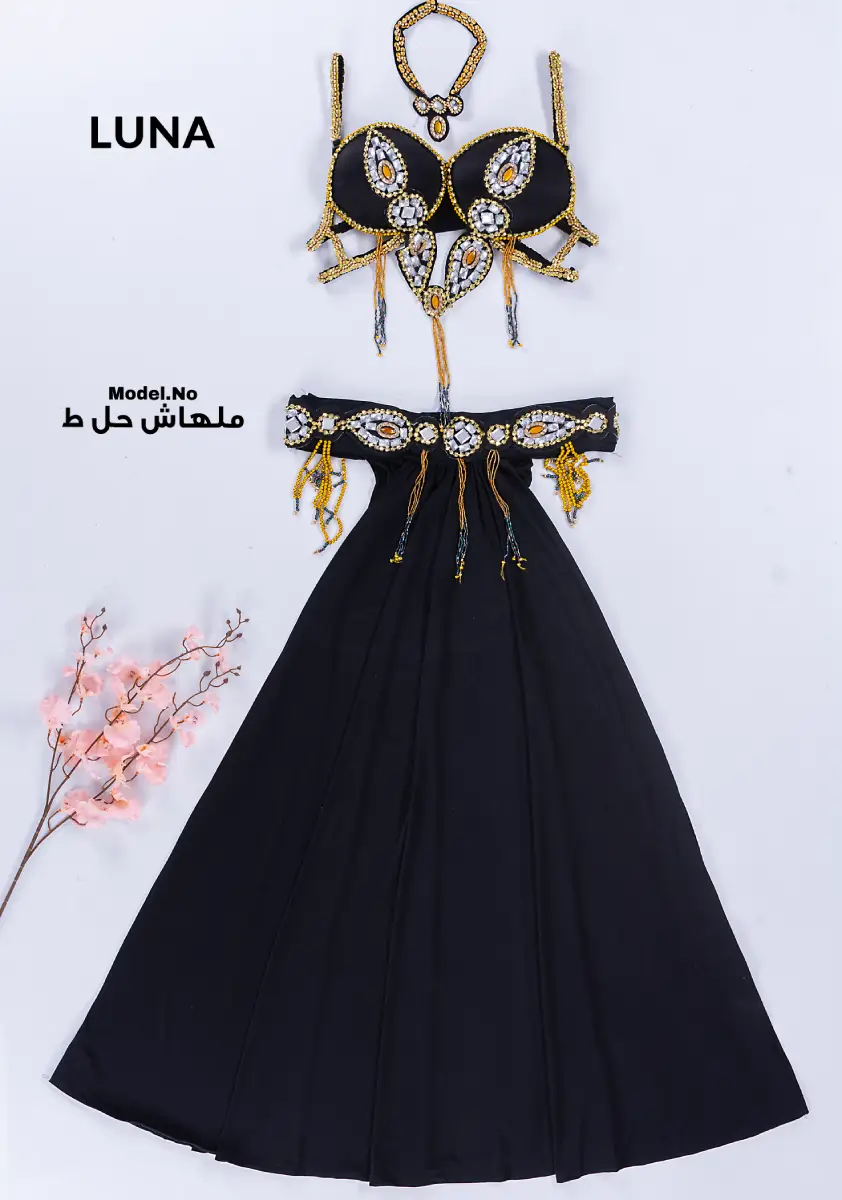 موديل بدله رقص تلت قطع عباره عن حماله صدر مزوده بالتطريز الهاند ميد وتنوره طويله خامه زبده مزوده بالتطريز وطوق مزود بالتطريز خامات زبده ♥