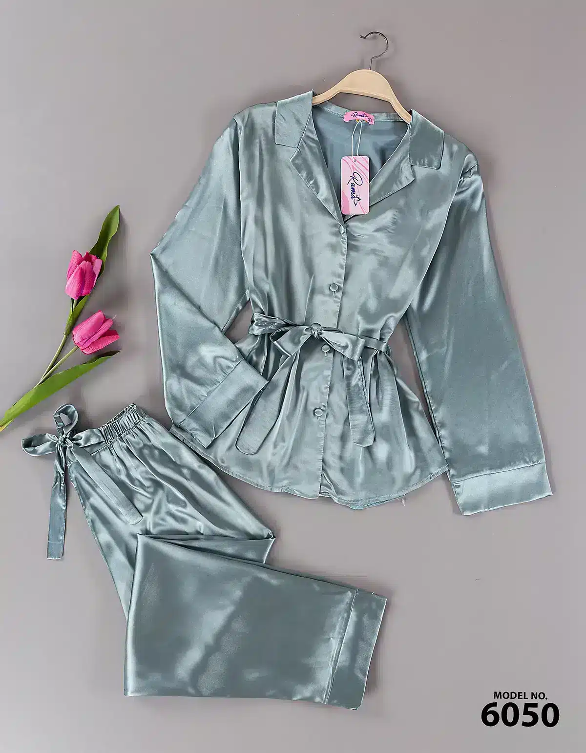 موديل بيجامة ستان قطعتين بكم كود 6050