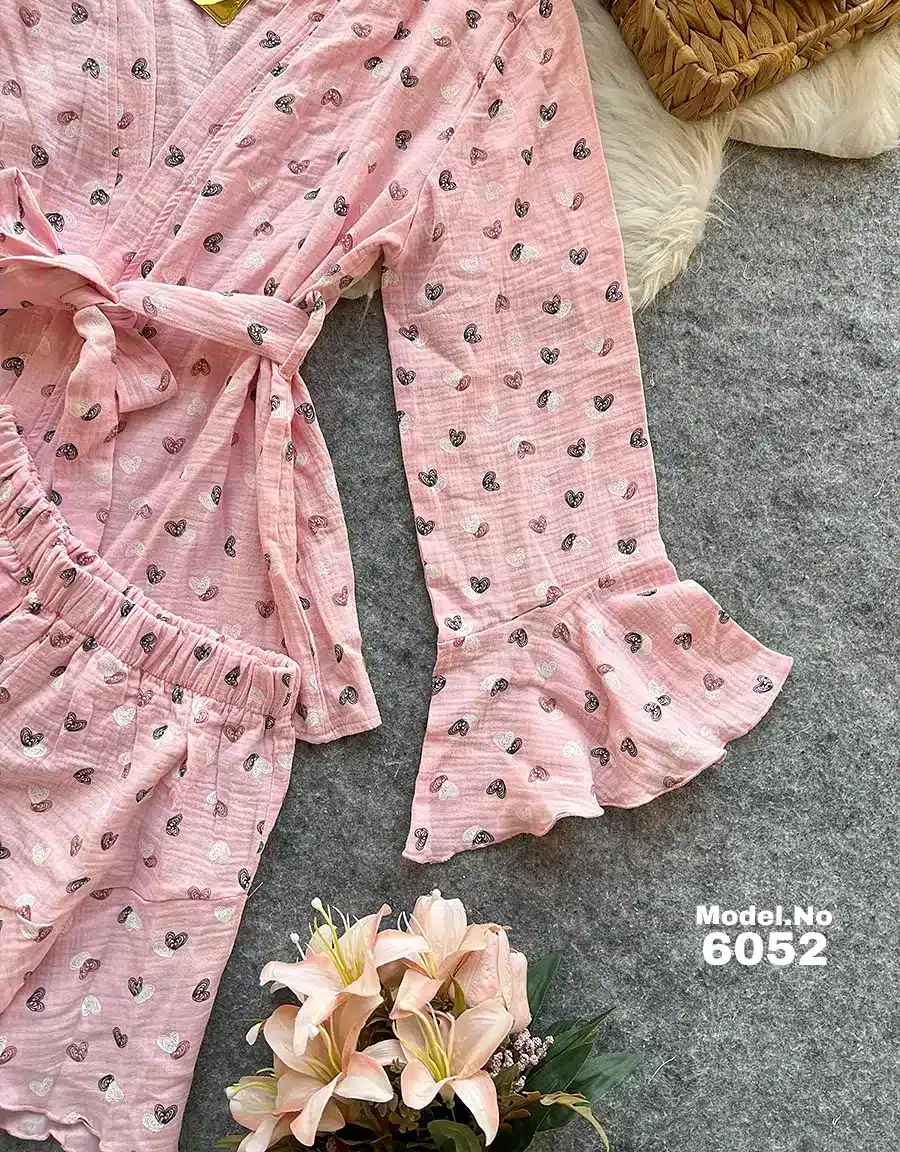 موديل بيجامة ستان بنطلون منقوش كود 7089