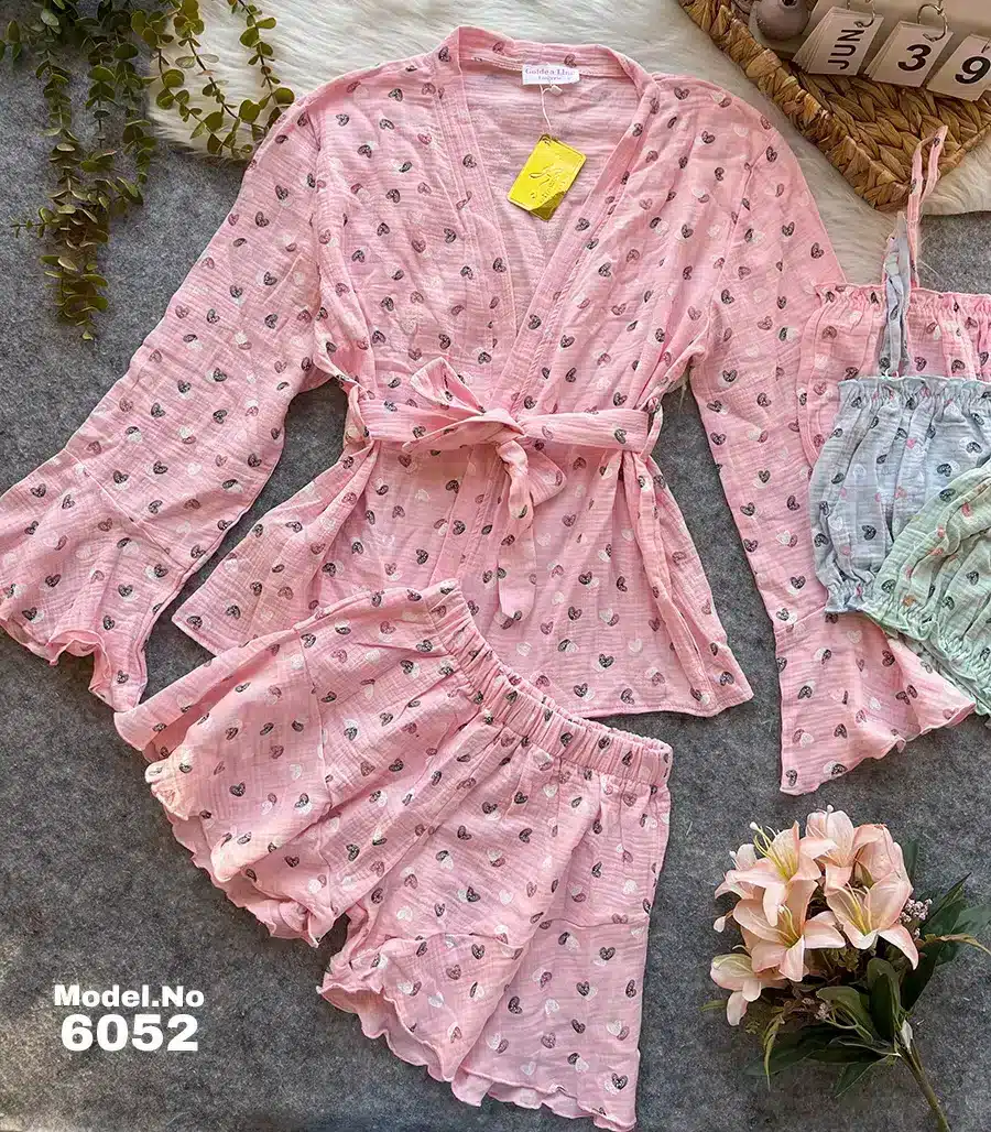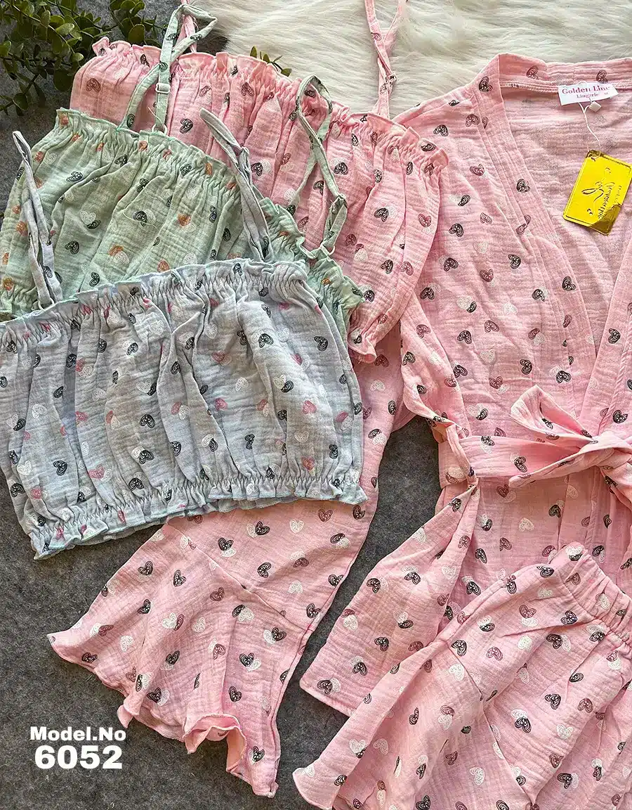 موديل بيجامه بنطلون ثلاث قطع كود 2153-4