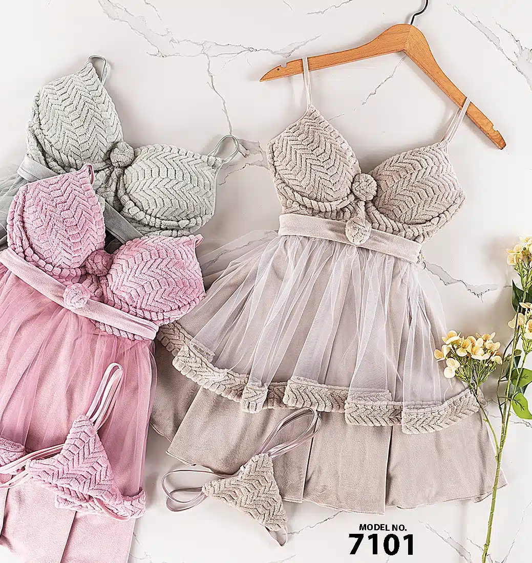 موديل بيجامه قطيفه 3 قطع كود 7114