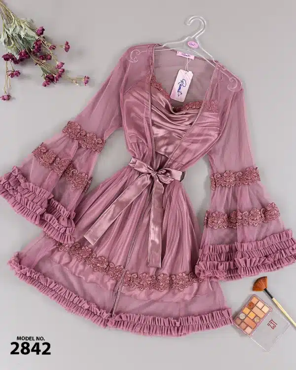 موديل بيجامة ستان بنطلون منقوش كود 7089