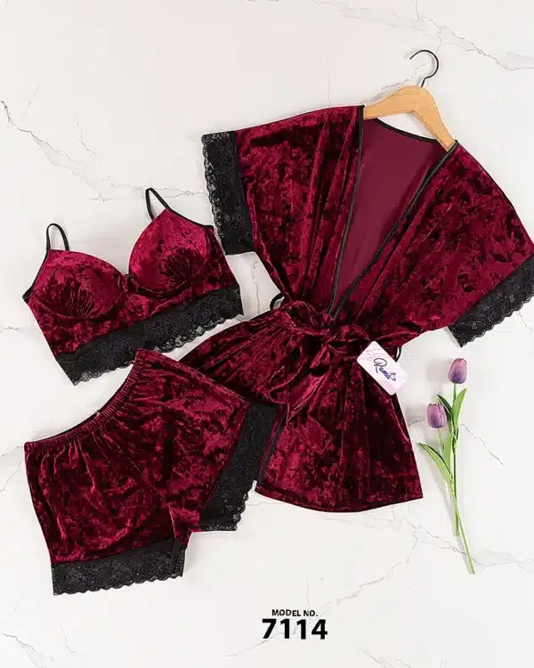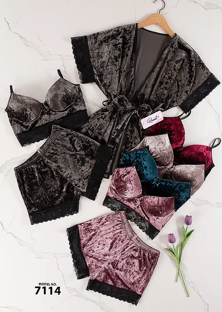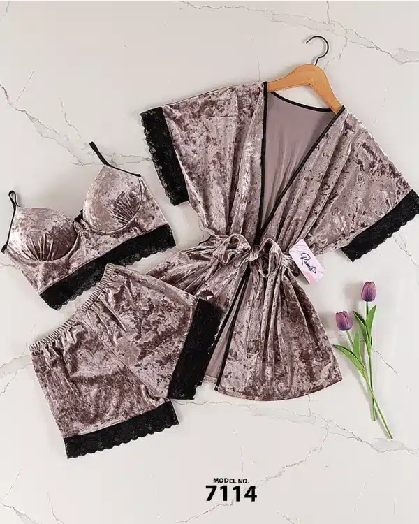 موديل بيجامه قطيفه 3 قطع كود 7114