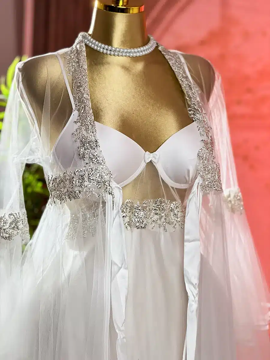 الموديل عباره عن قميص ستان ناعم مع الدانتيل و روب تل مع قصه مميزه