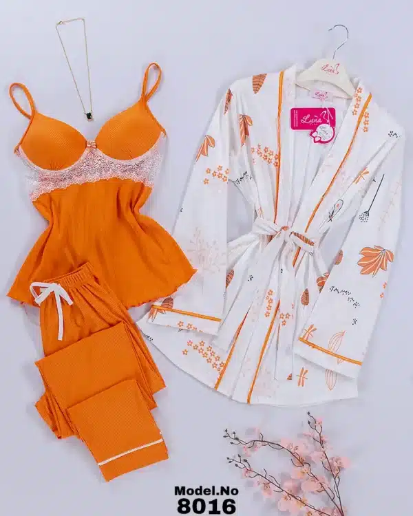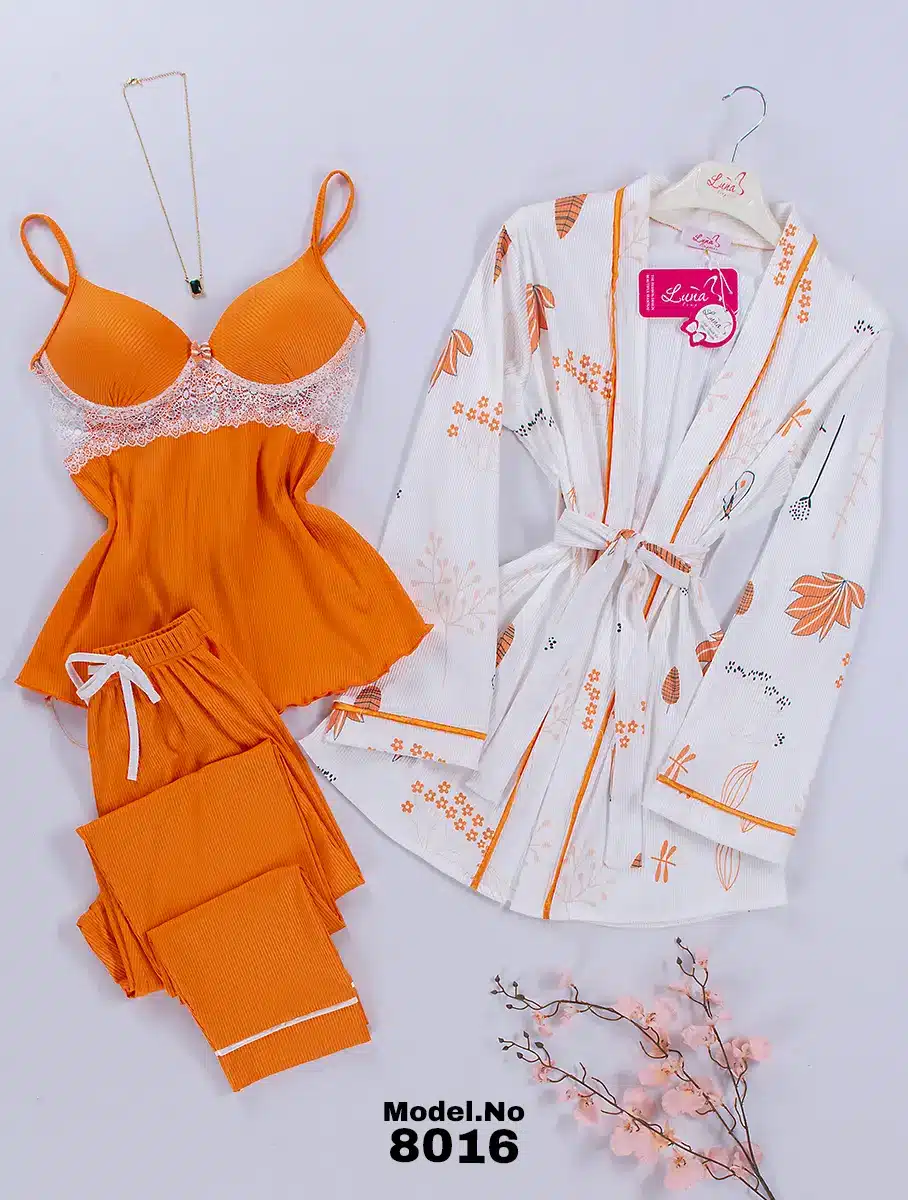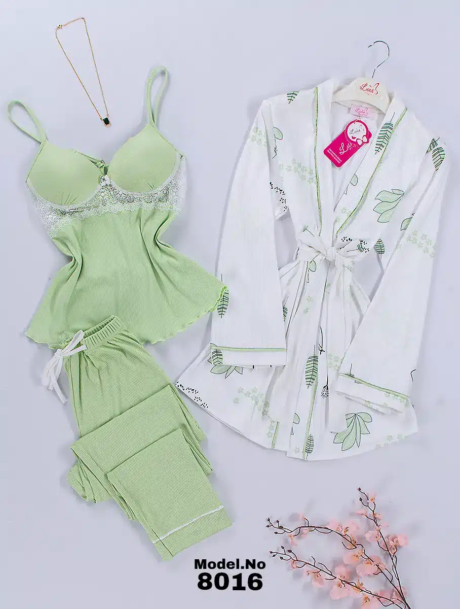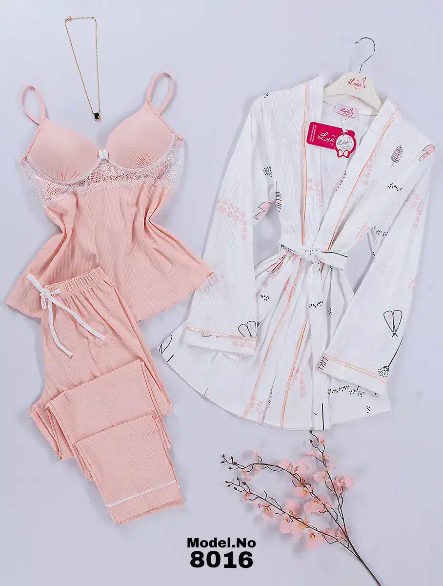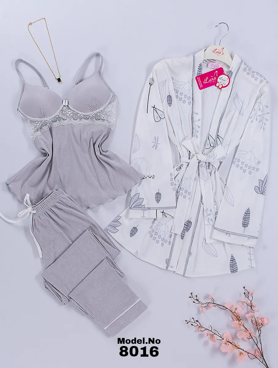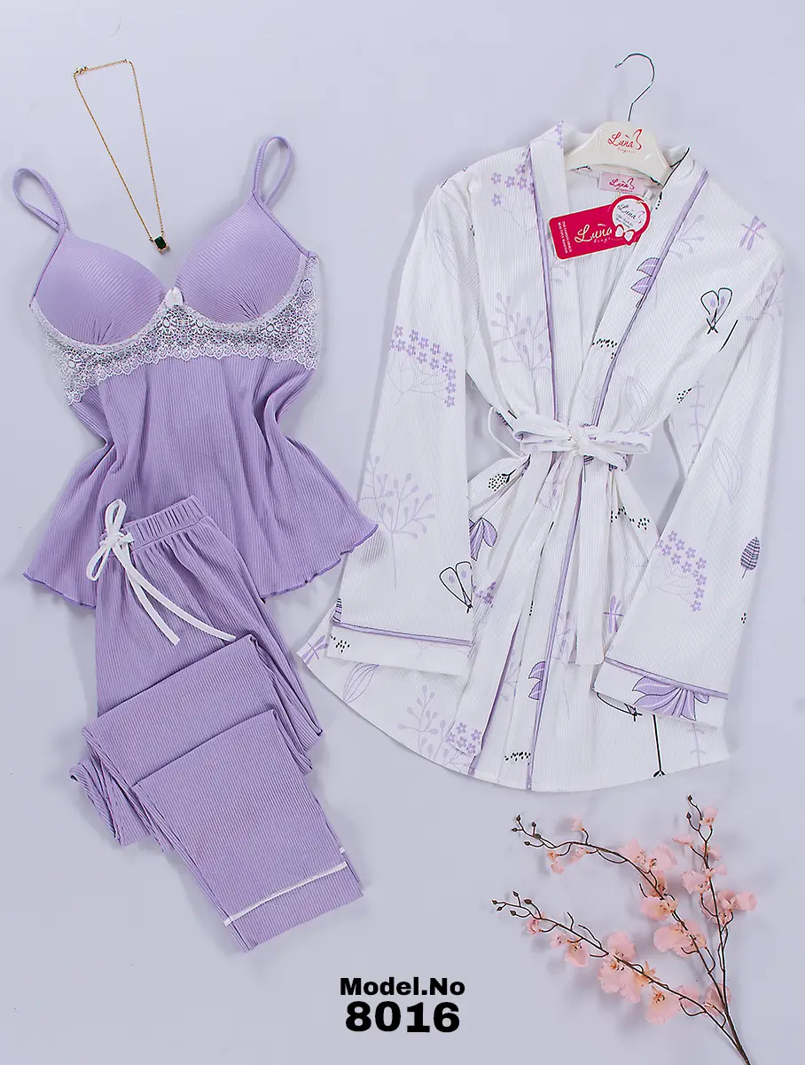 موديل بيجامة 3 قطع قطن كود 8016