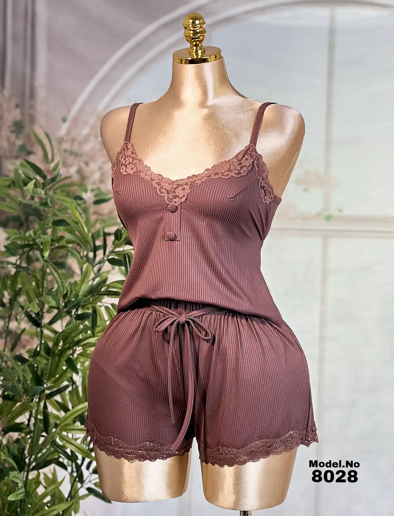 موديل بيجامه شورت قطعتين عباره عن توب قطن بدون كب مزود برباط ودانتيل ناعم وشورت قطن مزود بدانتيل خامات مستورده ♥