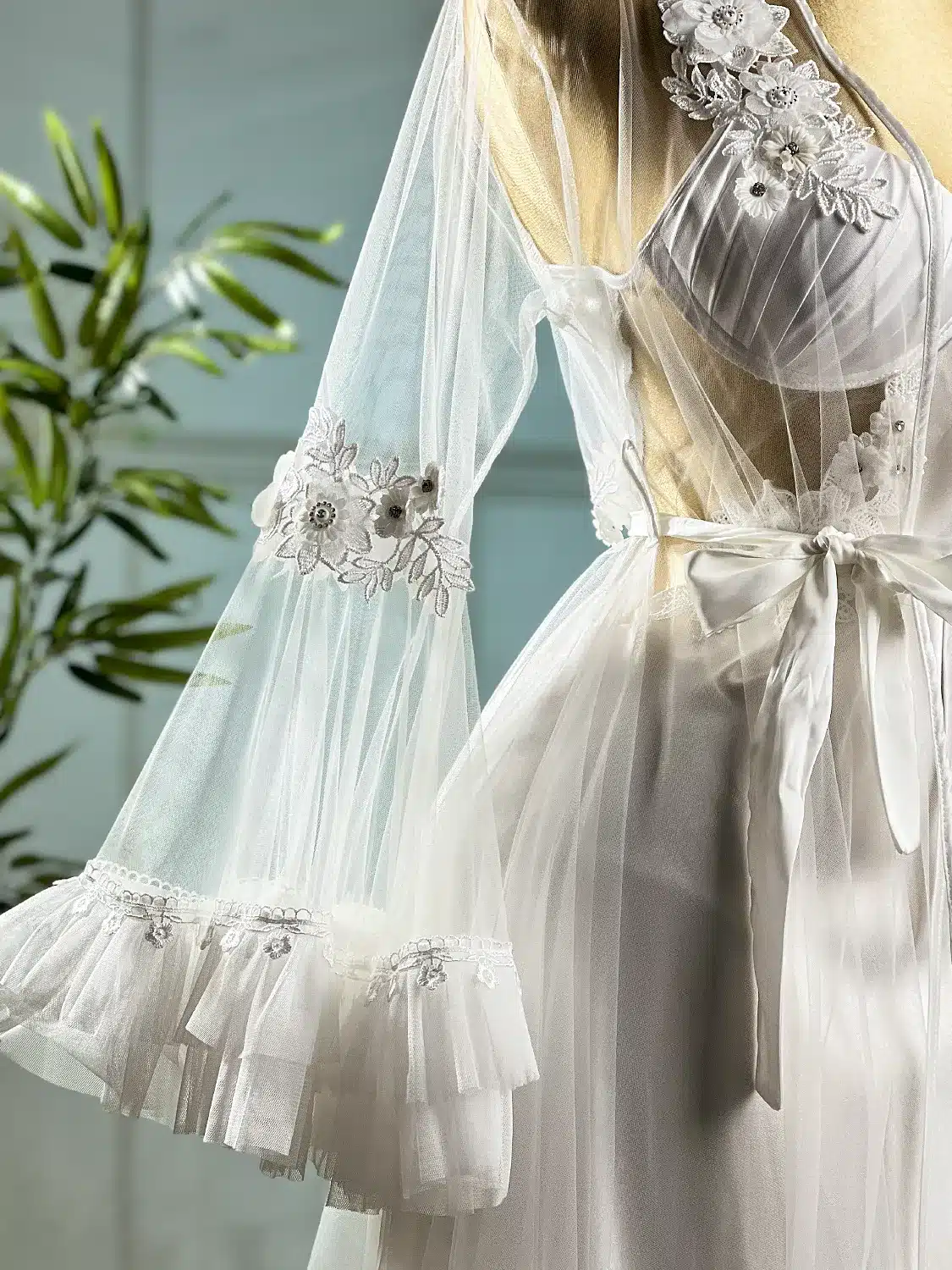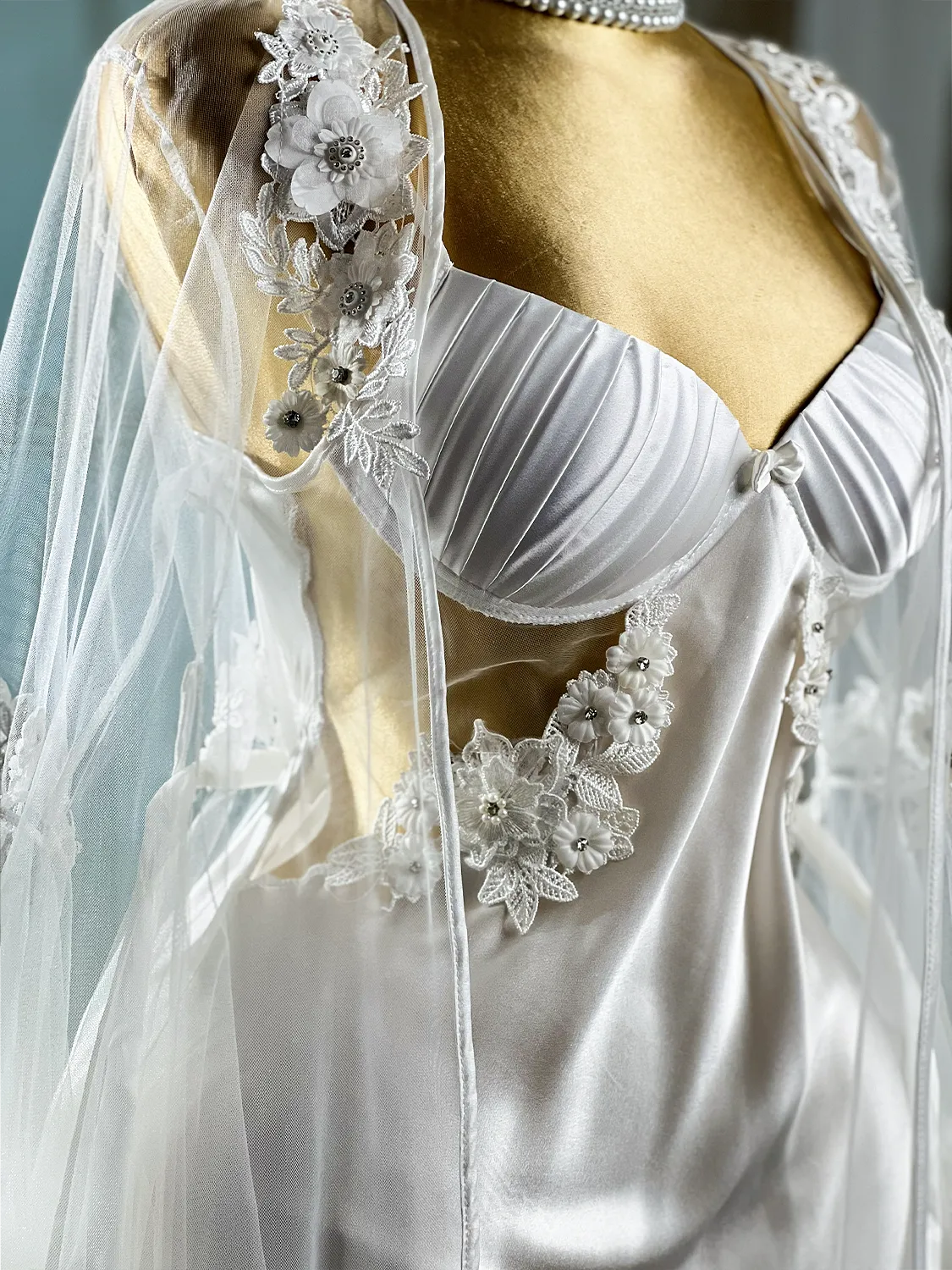 موديل بيجامة 4 قطع ستان مشجر كود 1402