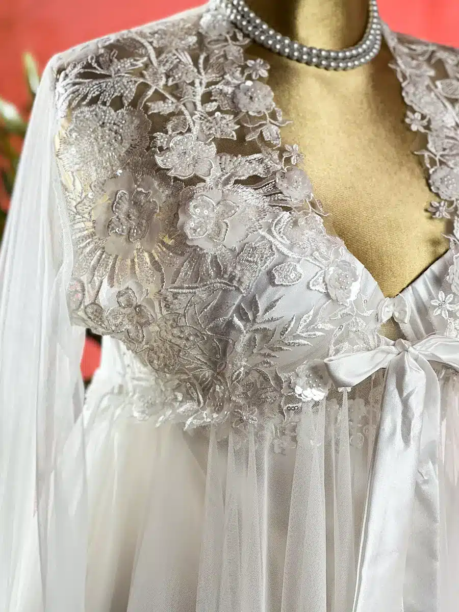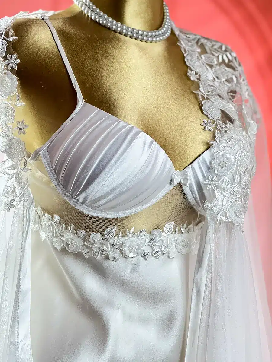 🌸طقم صباحية قصير قطعتين بقميص ستان حرير ناعم جدا مزود بكاب دانتيل مطرز بدقة وفخامة .وروب تل ناعم بأكمام واسعة تضيف لمسة دلع وجاذبية