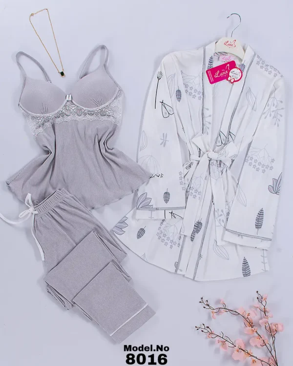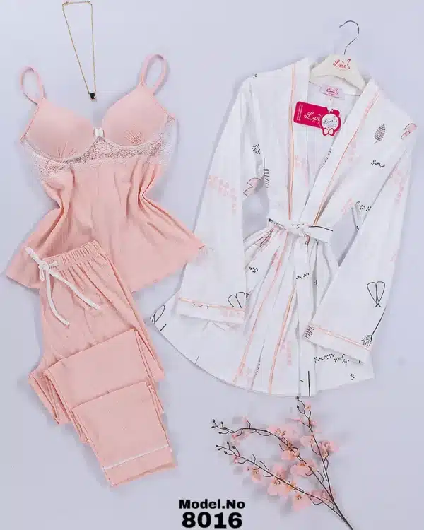 موديل بيجامه بنطلون ثلاث قطع كود 1536